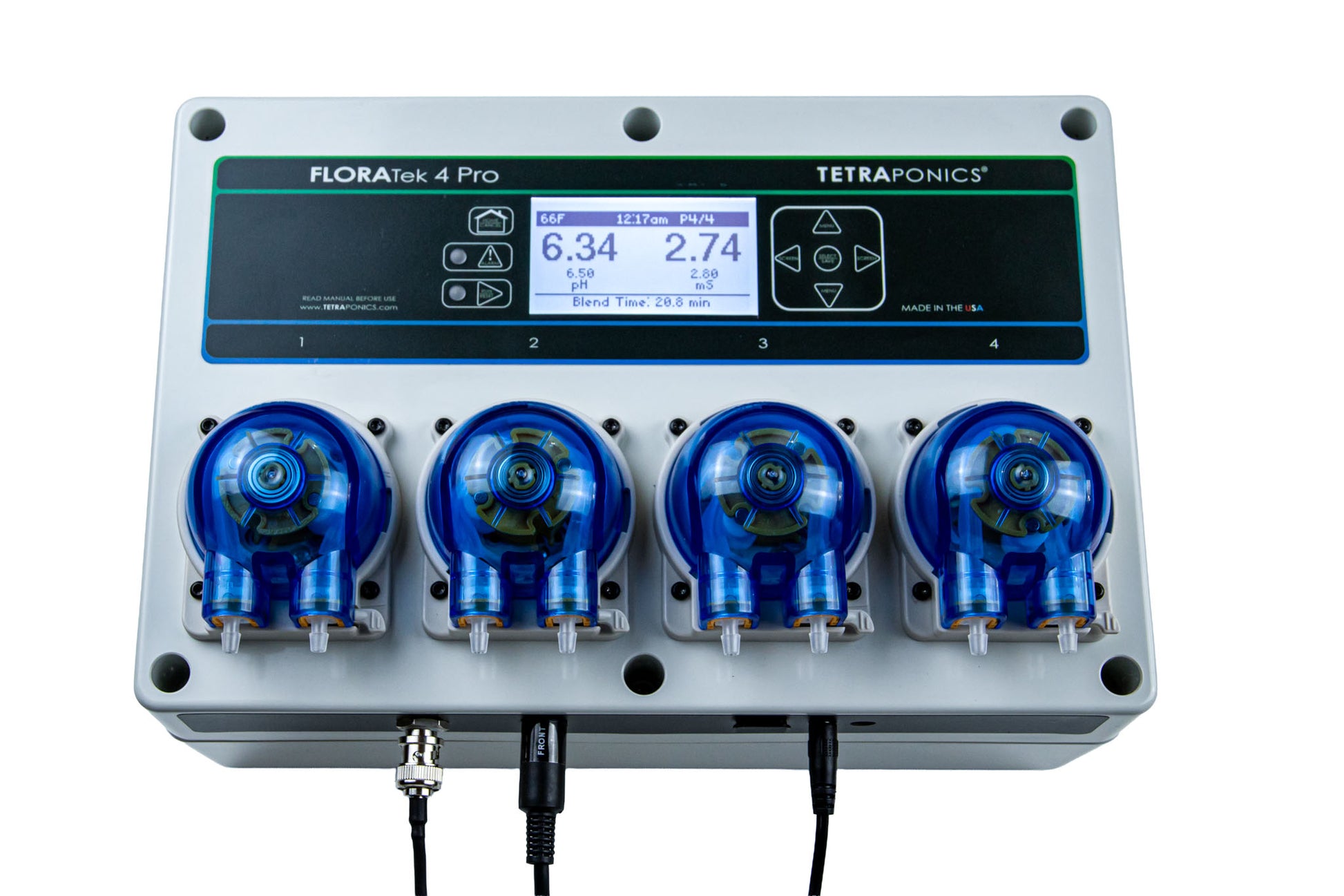 - The four integrated dosing pumps can be configured for 4 nutrients, 3 nutrients and one pH solution, or 2 nutrients with dual pH control.